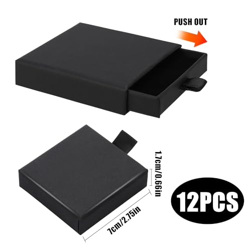 💍 Packungsinhalt: Sie erhalten 12 kleine schwarze Schmuck Box mit einer Größe von 7 x 7 x 1,7 cm. Sie sind ausgesprochen zart und schön und es gibt ausreichende Mengen, um Ihren unterschiedlichen Bedürfnissen gerecht zu werden.