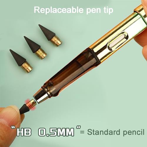 | Hochwertiges Material | – Der Körper dieses Ewigkeitsstifts besteht jeder Antiblockiersystem-Material und Metallmaterial, langlebig und leicht zu halten. Der Stiftkern besteht jeder einer Kombination jeder Legierung und Blei, wodurch das Abfassen geruhsam und äußerst einfach zu bedienen ist.