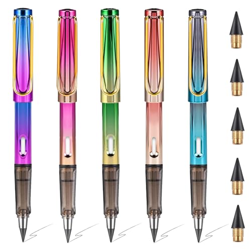 zoerbufan Ewiger Bleistift [5 Stück], Tintenlose Bleistifte mit 5 Pcs Wechselkopfm, Langlebiger Magischer Bleistifte Set mit Radiergummi für Schule Mitgebsel Kindergeburtstag Gastgeschenke (Bunte)