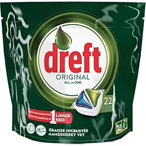 Dreft Platinum All-in-One-Geschirrspülerkapseln – Regular, für hartnäckige Flecken, reinigt sogar fettige Filter – 22 Kapseln