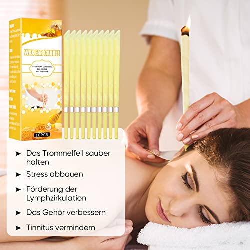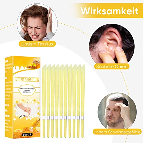 10 Stück Bienenwachs Ohrenkerzen, Natürliche Ohrkerzen zur Reinigung Ungiftig Zylindrisch mit Sicherheitsfilter Schutzscheiben und Wattestäbchen
