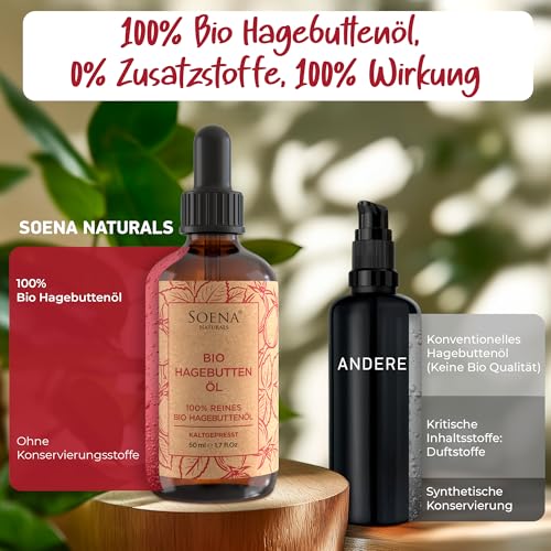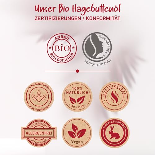100% BIO HAGEBUTTENÖL | Kaltgepresst & Rein | Made in Germany | Natürliches Wildrosenöl – Rosehip Oil |Für Gesicht Haare Haut | Rosenöl zur Gesichtspflege | Vegan – PUR 1-Inhaltsstoff –