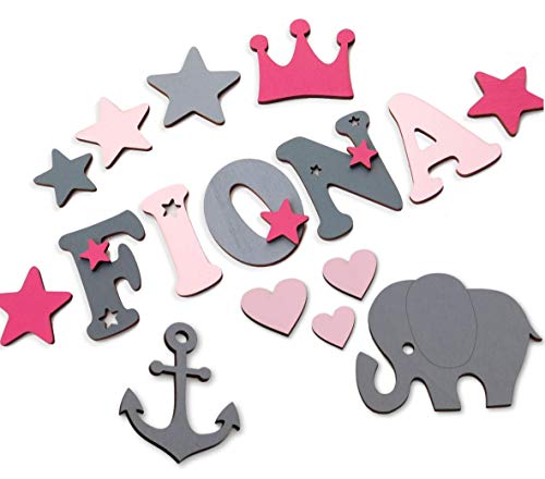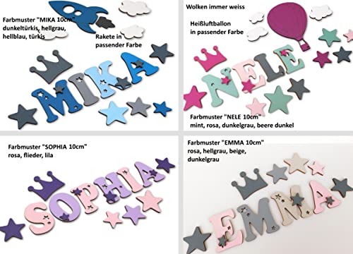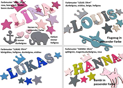 10cm Holzbuchstaben, Türbuchstaben für Kinderzimmer, Taufgeschenk, Geburtsgeschenk, Traumwelten-Zimmermann Deko, personalisierbar I Grundpreis bis 4 Buchstaben, 2 Sterne, Klebepads