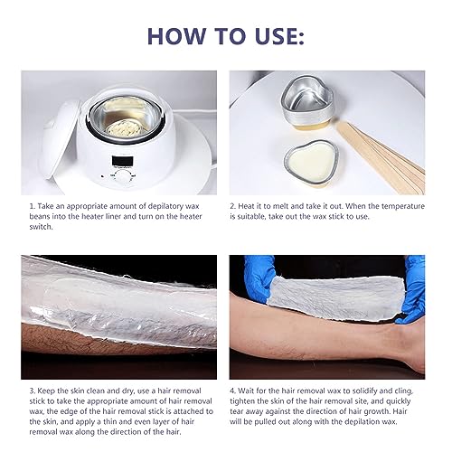EINFACH ZU VERWENDEN: Das Wachswerkzeug ist einfach zu bedienen, wiederverwendbar, hat eine gute Fließfähigkeit und lässt sich nicht leicht nerven. Es eignet sich sonderlich alles klar! zur großflächigen Haarentfernung. Bitte schätzen Sie die Produktbeschreibung für die spezifische Verwendung