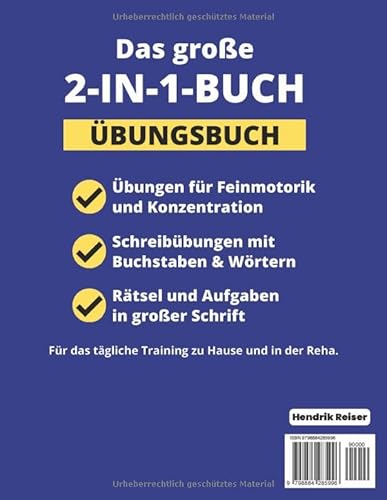 2-in-1-Buch nach Schlaganfall: Umfangreiches Übungsbuch mit Schreibübungen, Gedächtnistraining und Übungen für die Hand-Auge-Koordination