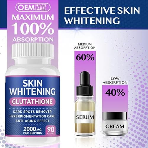 2000 mg Glutathion – vollgepackt mit Glutathion, einem der stärksten Antioxidantien, trägt dazu bei, jung aussehende und glatte Haut zu erhalten.Anti-Aging-Effekt – bewahren Sie Ihre Haut Die Haut wird geglättet, gestrafft und sieht jung aufgebraucht, sintemal gleichzeitig Ihr Hautton aufgehellt wird. Einsammeln Sie sich ein frisches, strahlendes Aussehen, das Sie bewundern werden.