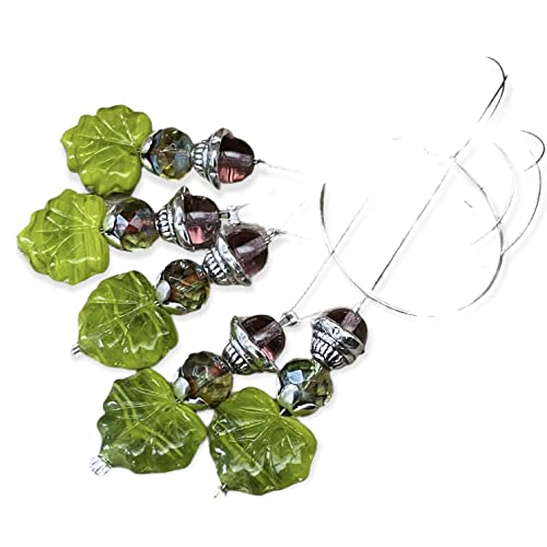5 edle Blätter Maschenmarkierer mit böhmischen Glasperlen – Maschenzähler – grün, aubergine, silber – Set – Stricken, Strickhilfe stitch marker