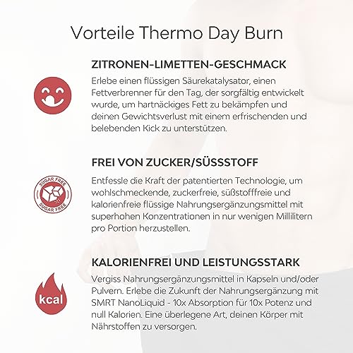 👍9 ZUTATEN IN EINER TAGESDOSIS: Unsere Produkte werden mit unserer SMRT NanoLiquid-Technologie hergestellt, die es dir ermöglicht, eine hohe Konzentration an Inhaltsstoffen in flüssiger Form zu mischen und schwer lösliche Tabletten, Kapseln oder Pulver zu vermeiden. Um die gleiche Menge an Inhaltsstoffen zu erhalten und eine wirksame Dosis zu erreichen, müsstest du bis zu 15 Kapseln verschiedener Präparate pro Tag einnehmen, bei Day Burn sind es hinwieder 5, 10 oder 15 ml pro Tag.