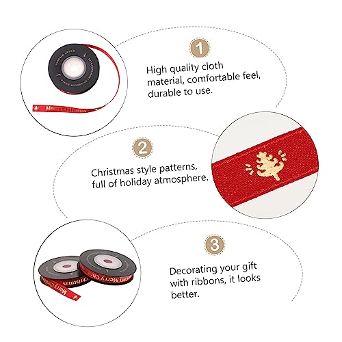ABOOFAN 4 Rollen Weihnachts-/Jahresfüller Kunsthandwerk Urlaubsverpackung Yards/Hochzeits-Ripsband Rotes Kuchenband Baumstrumpfzubehör Neue Schleife Für Fröhliche Blumensträuße