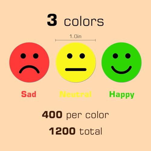 Aililong 1200 2.5cm Glückliche/traurige Emoji lächelnde Gesicht Aufkleber – Durchmesser, rote, gelbe und grüne Farben, Lehrer Belohnung Aufkleber