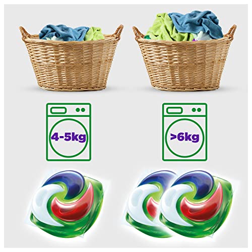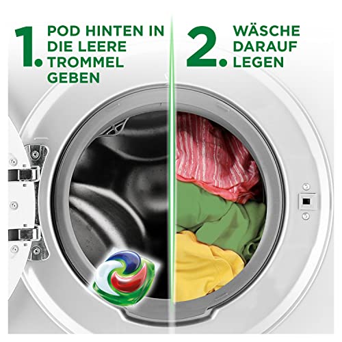 Saubere Wäsche unter Zuhilfenahme von den Ariel Kosmos in One Pods: 1. Fleckentfernung 2. Strahlende Reinheit 3. Frischer Aroma 4. Faserpflege 5. Ohne Scheiß ab 20°Kohlenstoff