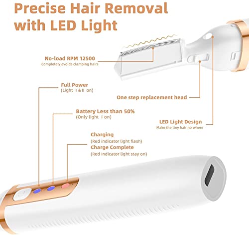 LED LIGHT & USB RECHARGEABLE — Der aktualisierte Haartrimmer per LED-Licht macht es klarer, winzige Haare zu sehen. Selbst in der dunklen Umgebung kann der elektrische Augenbrauentrimmer überschüssige Haare prägnant trimmen. Außerdem das praktische USB-Ladedesign macht es einfach zu laden.