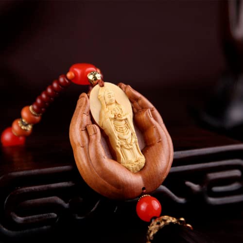 Auto-Anhänger, Auto-Hängezubehör, Rückspiegel-Hängeinnenraum, Box-Holz, chinesischer Guan-Kwan-Yin-Buddha-Handstatue, Mala-Perlen-Anhänger