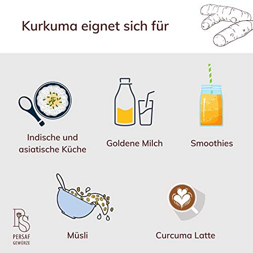 VIELSEITIG – Kurkuma eignet sich hervorragend zu Geflügel, Reis & orientalischen Gerichten oder kann denn natürliches Nahrungsergänzungsmittel z.B. in Goldener Milch & Kurkuma Latte dienen