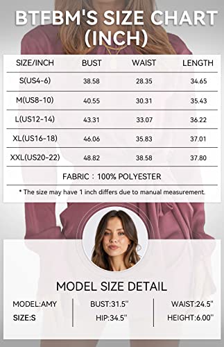BTFBM Lässiges Wickelkleid für Damen, langärmelig, gerüscht, Rundhalsausschnitt, Taillenbindung, kurze Kleider, solide Partykleider, Satin-Cocktailkleid, Massives Rosenrot, Groß