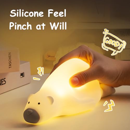 【Einfache Berührung zum Umschalten der Helligkeit】 Lustiges Kindernachtlicht mit Touch-Funktion. Drücken Sie zuerst den Netzschalter unten, um das Gerät einzuschalten, und dann können Sie das LED-Nachtlicht auf interessante Weise einschalten, z. B. durch Antippen / Kneifen / Klopfen. Süße liegende Ente Nachtlicht Licht begleitet Kinder besser in den Schlaf.