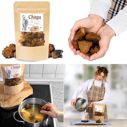 CHAGA PILZ BROCKEN 3-5CM aus 100% reinstem, getrocknetem Chaga Pilz für Original Chaga Tee – Echtes Naturprodukt aus nachhaltiger Nordischer Wildsammlung – 3-5cm große Chaga Stücke Frisch & direkt aus dem Wald geerntet und schonend getrocknet – Laborgeprüft