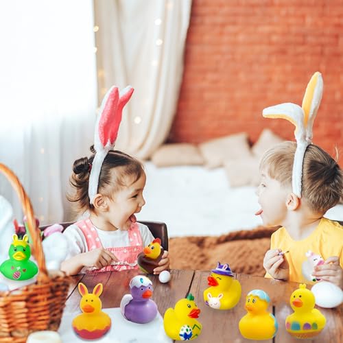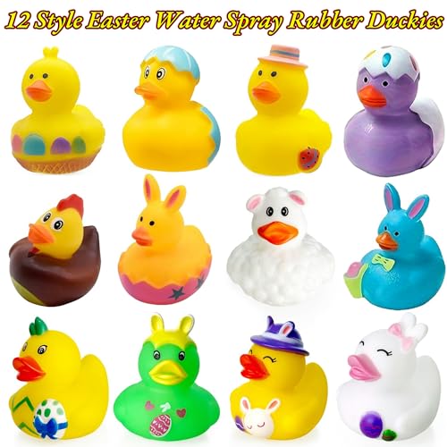 Chennyfun 12 Stück gefüllte Ostereier mit Gummiente,Gummi Enten, Bunt Gummi Badeenten,Quietschen Bade Enten,Float and Squeak Mini Gelbe Ente,Ostern Eier für Ostern Partyzubehör,Osterkorb Füllstoffe