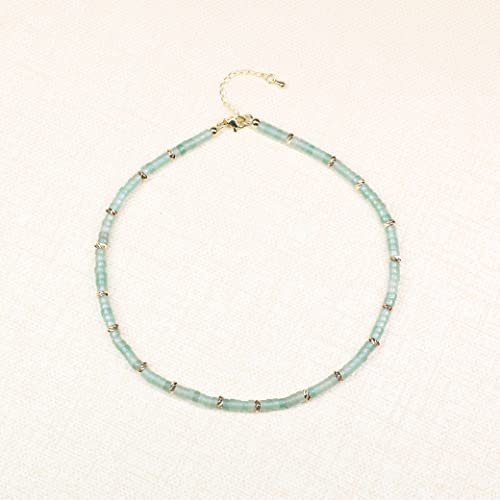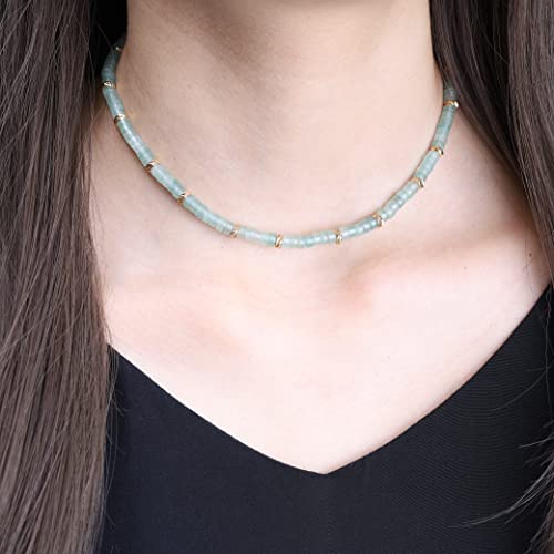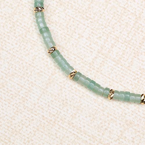 COAI Geschenkideen Damen Heishi Surfer Halskette Boho Bohemian Choker aus Grünem Aventurin 18k Vergoldete Kette