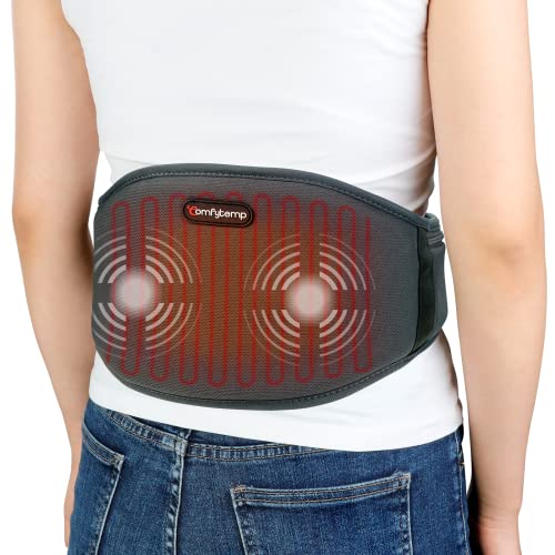 Comfytemp Wärmegürtel Rücken mit Powerbank, Vibrationsmassage Heizgürtel mit 3 Wärmestufen & 3 Massagemoden, 5000mAh Akku, Elektrisches Heizkissen mit Abschaltautomatik für Rücken/Bauch/Lenden