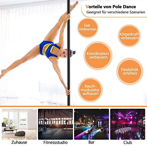 【Drehend oder Statisch】 Ausgestattet mit 2 verschiedenen Modi, erlaubt es Ihnen diese professionelle Stripper Stange den Drehmodus oder den Statischen Modus zu verwenden, wodurch sie sich an Ihre individuellen Bedürfnisse