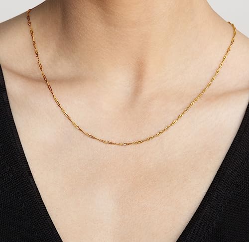 DAY BERLIN: Filigrane Damen Halskette „Twist“ in 40cm Länge + 5cm Verlängerungskettchen. Leichte Singapur Kette ohne Anhänger, Kettenstärke 2mm. 316L Edelstahl. In Silber, Rosegold & Gold hochwertig 18k vergoldet. Designed