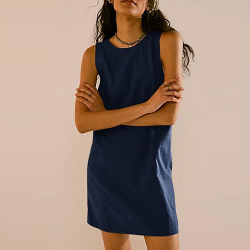 DHYUEN Kleider Damen Ärmellos Rückenlos Sommerkleider Freizeitkleid Einfrabige Oberhalb des Knies Minikleid Tankkleid Sommer Leichte A-Linie Kleid Strandkleid Elegant Lockere Partykleid Kurzkleid