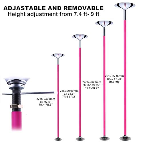 【Einstellbare Höhe】 Stangenhöhe von 7,3 Fuß bis 9 Fuß. Diese Tanzstange mit Verlängerung eignet sich für flache Decken und Böden aus Popcorn/Holz/Beton. Sie können die Höhe sogar am unteren Ziel der Stange frei und einfach einstellen.