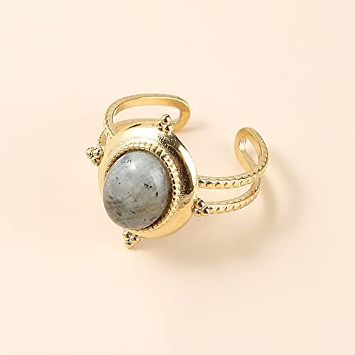 Einstellbare Ring Frauen, Goldener Doppelschicht-Intarsien-Oval-Natürlicher Labradorit-Luxus-Verstellbarer Offener Knöchel-Schwanz-Ring-Finger-Gelenk-Ring-Schmucksache-Geschenk Für Frauen-Dame-M