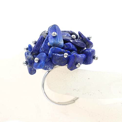 Einstellbare Ring Frauen, Silberner Natürlicher Unregelmäßiger Kies Lapislazuli-Stein-Blumenstrauß-Persönlichkeit Verstellbarer Offener Knöchel-Schwanz-Ring-Finger-Gelenk-Ring Schmuck-Geschen
