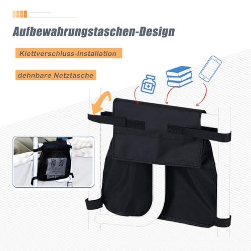 – Bequeme Lagerung: Mit magischem Klebeband und einer elastischen Netztasche zur Aufbewahrung von Medikamenten, Telefonen und anderen wichtigen Dingen.