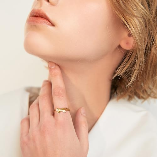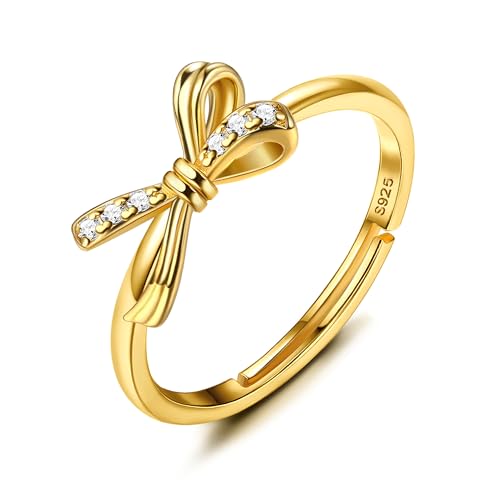 FIOROYAL Gold Schleifen Ringe für Frauen, verstellbare Fingerringe, Goldener dünner Ring für Mädchen, Hochzeitsversprechen-Ring