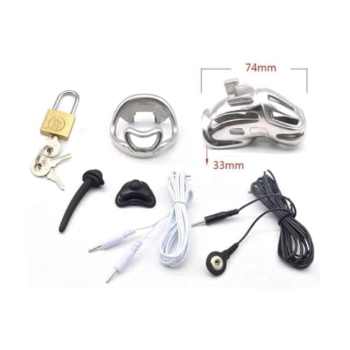 FJYDM Keuschheitsgürtel Cock Cage Reizstromgerät Edelstahl Penis Käfig Mit Harnröhren Dilator Elektroschock Sklave Bondage Sexuelle Elektrostimulation Sexspielzeug for Männer