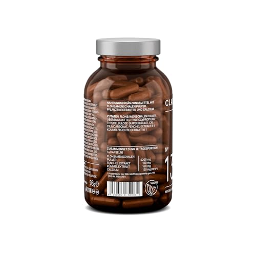 KOMPLEX FÜR DIE VERDAUUNG – Unsere Flohsamen Kapseln enthalten 160mg Fenchel Extrakt 6:1 (entspricht 960mg Fenchel) und 160mg Kümmel Extrakt 10:1 (entspricht 1600mg Kümmel), angereichert mit 120mg Calcium zur natürlichen Unterstützung der Verdauung.