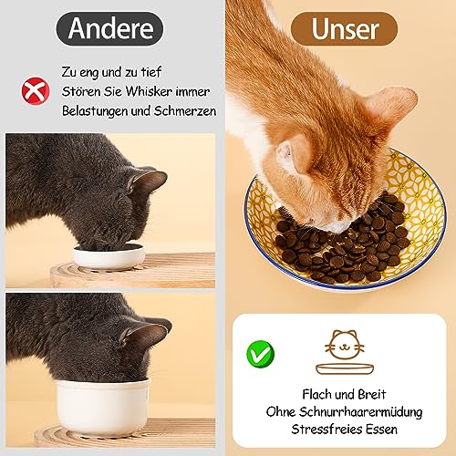 Gesundes und Hygienisches Material – Unsere Katzenschalen bestehen aus hochwertiger Keramik in Lebensmittelqualität, die bei hohen Temperaturen gebrannt wird, frei von Blei und Cadmium, ungiftig und 100 % sicher. Die robuste Konstruktion des Katzen Schüssel aus keramik gewährleistet seine Langlebigkeit und ist für Katzen aller Größen und Rassen geeignet.