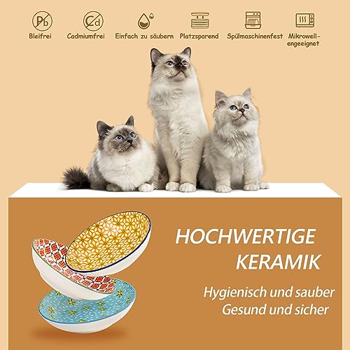 Gesundes und Hygienisches Material – Unsere Katzenschalen bestehen aus hochwertiger Keramik in Lebensmittelqualität, die bei hohen Temperaturen gebrannt wird, frei von Blei und Cadmium, ungiftig und 100 % sicher. Die robuste Konstruktion des Katzen Schüssel aus keramik gewährleistet seine Langlebigkeit und ist für Katzen aller Größen und Rassen geeignet.