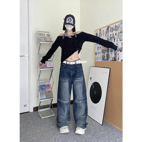 Gewaschene, gespleißte Jeans mit weitem Bein, lockere, schmale, vielseitige und drapierte Hose für Männer und Frauen