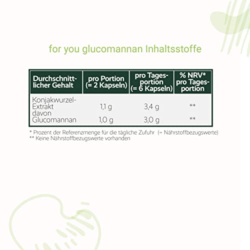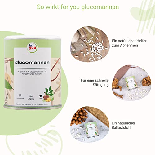 for you glucomannan Kapseln – 180 Kapseln 3000mg je Tagesdosis Glucomannan aus Konjakwurzel-Extrak – Mit 95% standardisierten Glucomannangehalt – Sättigungskapseln hochdosiert & vegan – Abnehm Helfer