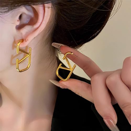 Goldene Ohrringe für Damen: Tropfen, Buchstabe V & Designer-Geometrie – Eleganz für Frauen und Mädchen
