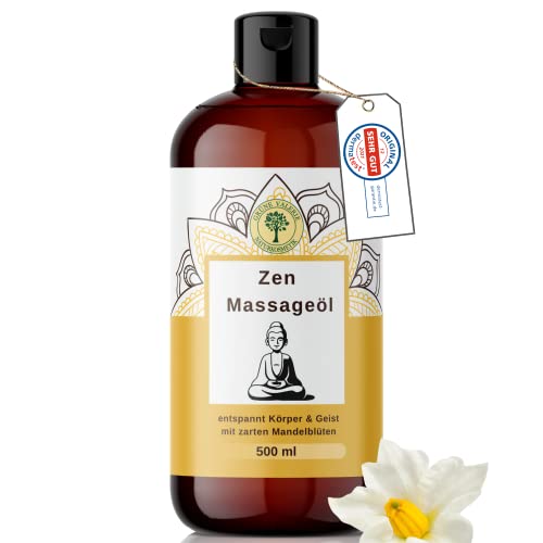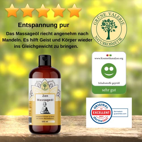 GRÜNE VALERIE® Zen – Massageöl XXL 500 ML – mit süßen Mandeln – [DERMATEST: EXCELLENT] – Entspannung für den Geist und die Gefühlswelt – Qualitäts Öl aus Italien