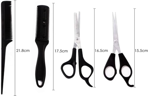 Haarschere, 4-teiliges Salon-Profi-Friseur-Friseur-Set, Haarschneideschere, Kamm, Effilierschere, flache Zähne, Friseur-Styling-Werkzeuge, Pflegeschere