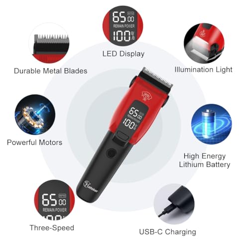 Smart-LED-Anzeige & Beleuchtung: Intelligente Anzeige der verbleibenden Leistung, der Geschwindigkeit und der Öl-/Ladeerinnerung, sowie eine Beleuchtung, die sich am Kopf der Hundeschermaschine befindet und Ihnen hilft, alias in dunklen Bereichen effizient zu sensen.