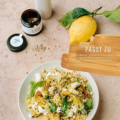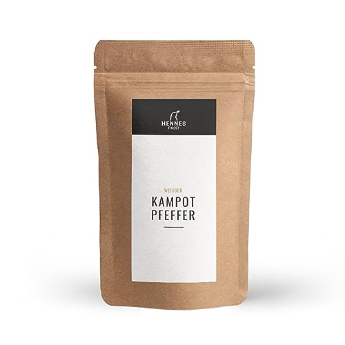 Hennes Finest Kampot Pfeffer Weiß – Weiße Pfefferkörner (Pfeffer Kampot), weißer Pfeffer ganz, Kampot Pepper White, Pfeffer für Mühle (Pfeffer Weiss aus Kambodscha), grober Pfeffer