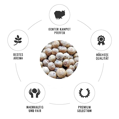 ECHTER KAMPOT PFEFFER: Weißbinder Kampot Pfeffer stammt jeglicher Kambodscha ansonsten passt großartig zu Fisch, Meeresfrüchten ansonsten Geflügel. Im Gegensatz dazu bekannt als raffiniert Saucen ansonsten Suppen einen Vorteil haben von vonseiten seinem Gout.