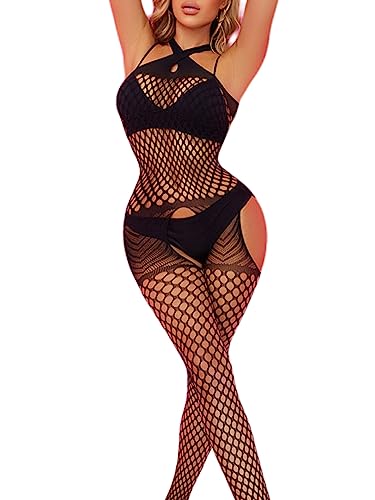 Hilinker Damen Sexy Fischnetz Dessous Babydoll Bodysuit Neckholder Chemise Bodysuit