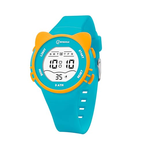 HMJIA Kinderuhr Mädchen mit Katzenmotiv 3ATM Wasserdicht mit Alarm Stoppuhr Licht Kinderuhr Digital LED-Lich Geburtstag für 3-12 Jahre Mädchen