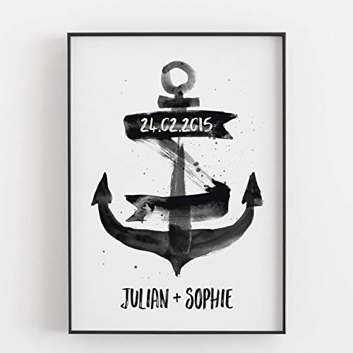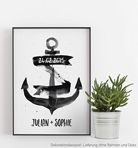 Hochzeitsgeschenk Brautpaar Gastgeschenk Hochzeit Jahrestag Geschenk Anker Kunstdruck personalisiert ungerahmt