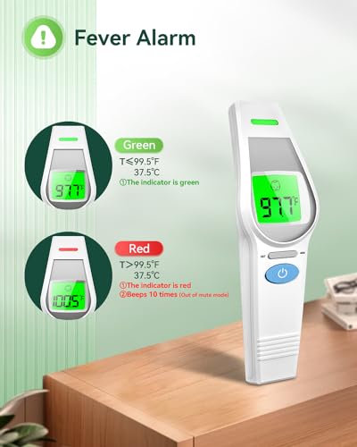 Fieberalarm mit Rotlicht: Fieberthermometer für Kinder und Erwachsene können Sie daran erinnern, wenn die Körpertemperatur über 37.5°C/99.5°F über Farbe sichtbare Anzeige des Alarms auf dem großen LCD-Bildschirm und ein Gefahrenmeldung ertönt für 10 mal.
