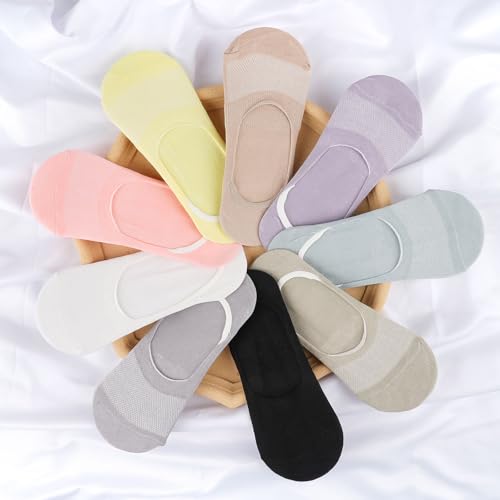 Hopton 9 Paare Füßlinge Damen, 35-40 Multi-Colour Sneaker Socken, Unsichtbare Atmungsaktiv Ballerina Socken mit Rutschfest Silikon für Loafer Flache Schuhe Sneakers
