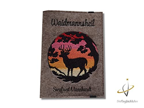 Weite/Metrik Jagdscheinhülle äußerlich: ca. 11,8 x 15,8 cm (einvernehmlich) Entsprechend an Stelle Jagdschein u. a. Waffenbesitzkarte in dieser Weite solange bis 11 cm x 15 cm. Verwendete Materialien 2 mm Polyesterfilz (schadstoffarm)